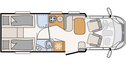 Deze camper heeft een luifel en een fietsenrek inbegrepen. Met de handige draaiende stoelen voorin heb je een makkelijke doorloop van de bestuurders cabine naar de rest van de camper.