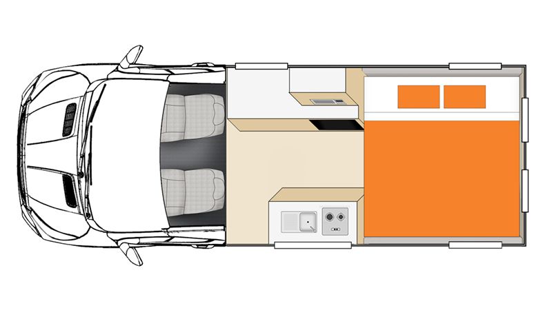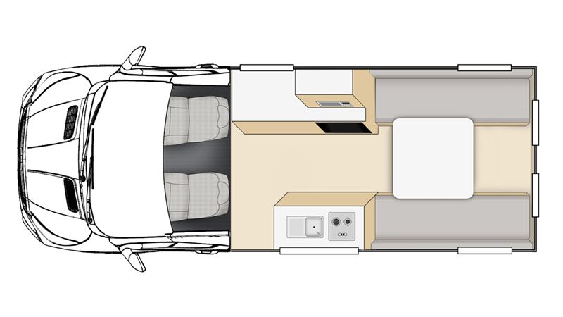 Please note: the layout of the camper as shown is an indication. The layout of the camper you will receive may be different.
