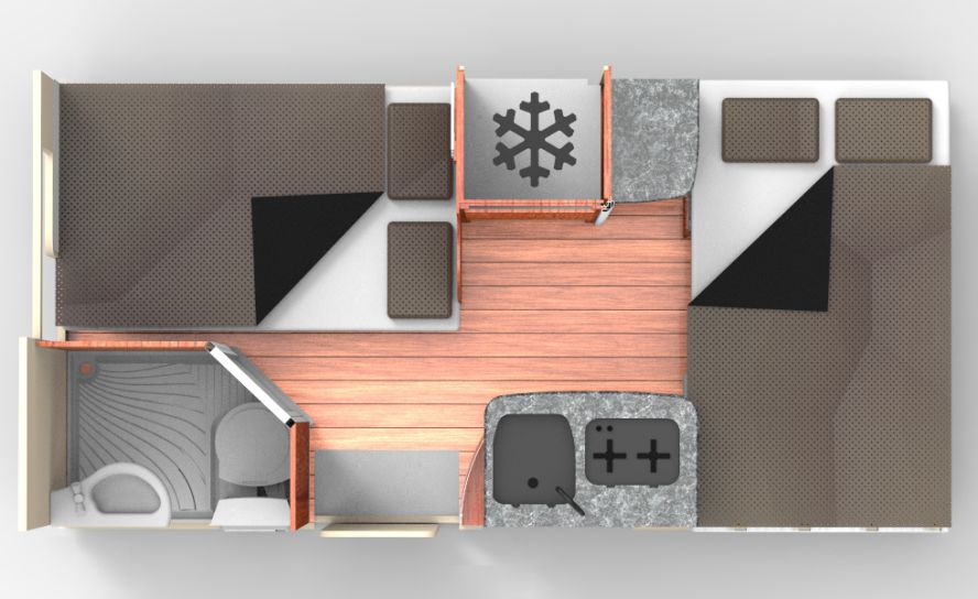Please note: the layout of the camper as shown is an indication. The layout of the camper you will receive may be different.