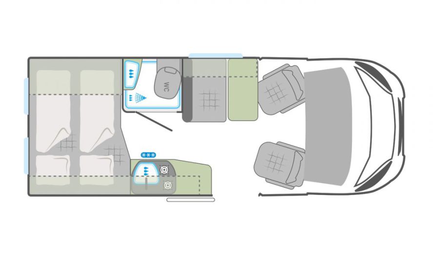 Please note: the layout of the camper as shown is an indication. The layout of the camper you will receive may be different