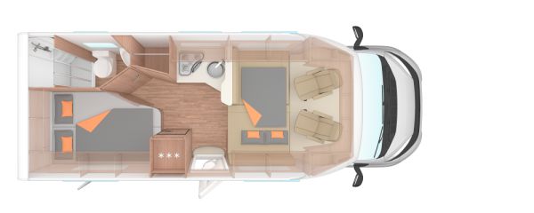 Please note: the layout of the camper as shown is an indication. The layout of the camper you will receive may be different.