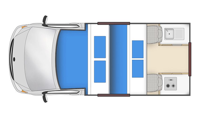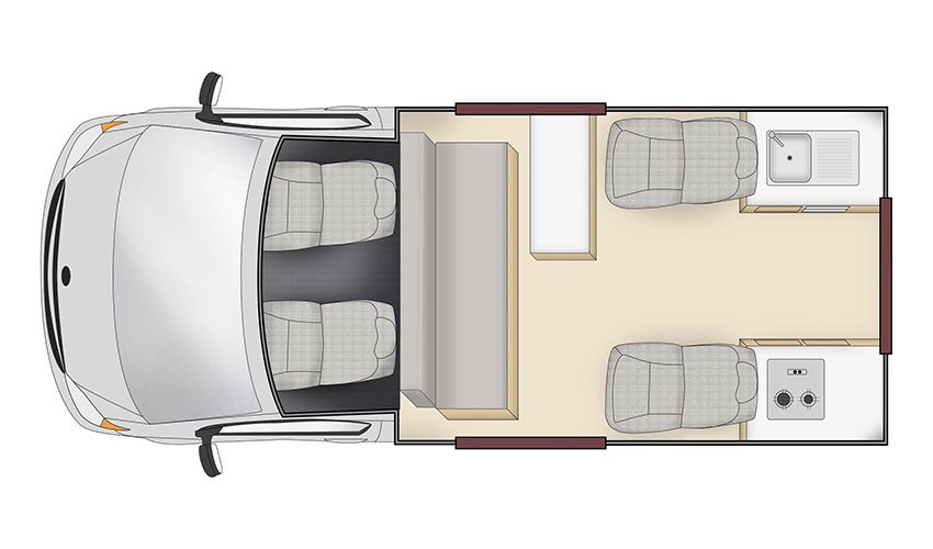 Please note: the layout of the camper as shown is an indication. The layout of the camper you will receive may be different.