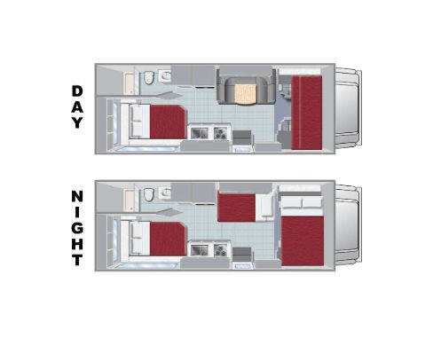 Please note: the layout of the camper as shown is an indication. The layout of the camper you will receive may be different.