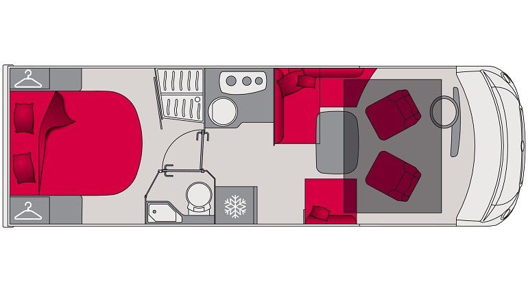 Please note: the layout of the camper as shown is an indication. The layout of the camper you will receive may be different.