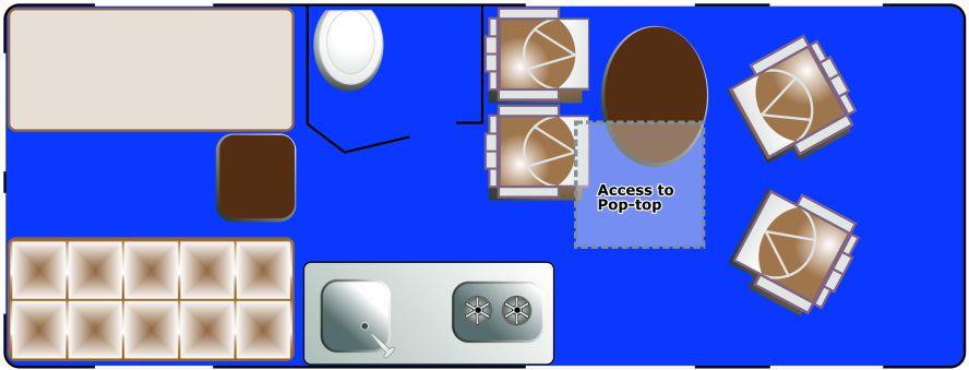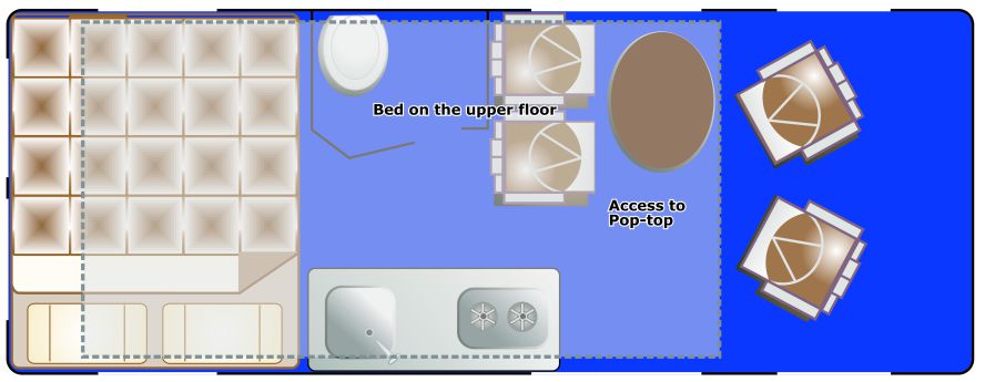 Please note: the layout of the camper as shown is an indication. The layout of the camper you will receive may be different.