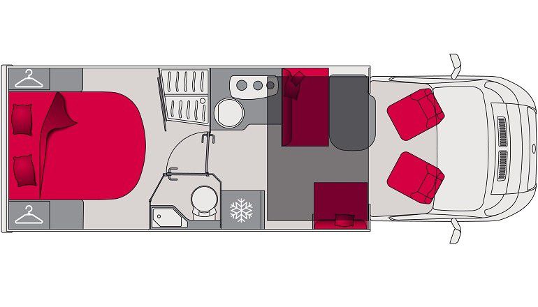 Please note: the layout of the camper as shown is an indication. The layout of the camper you will receive may be different.
