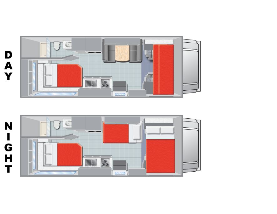Please note: the layout of the camper as shown is an indication. The layout of the camper you will receive may be different.