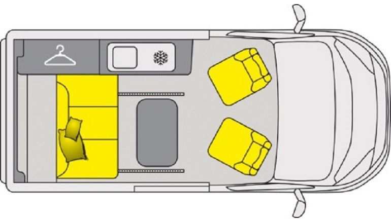 Please note: the layout of the camper as shown is an indication. The layout of the camper you will receive may be different.