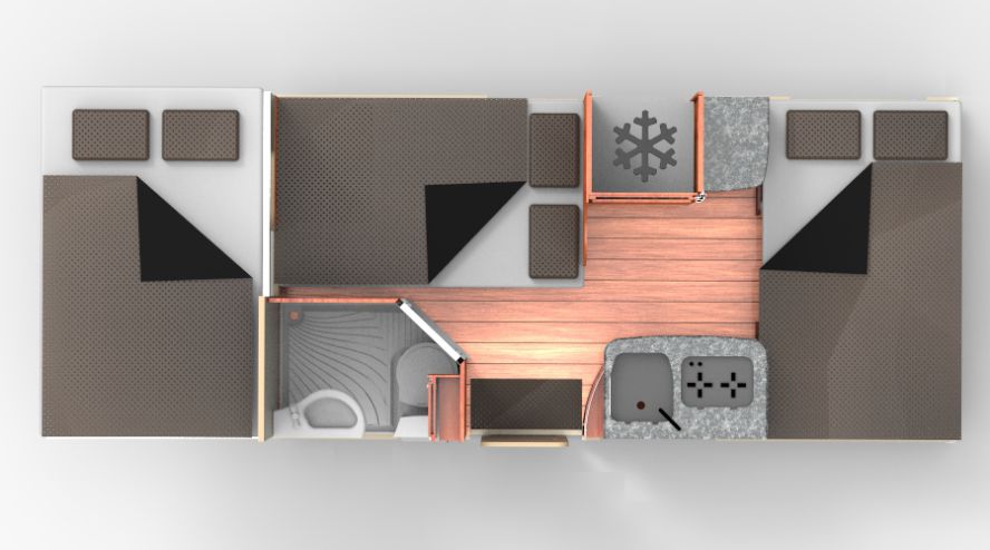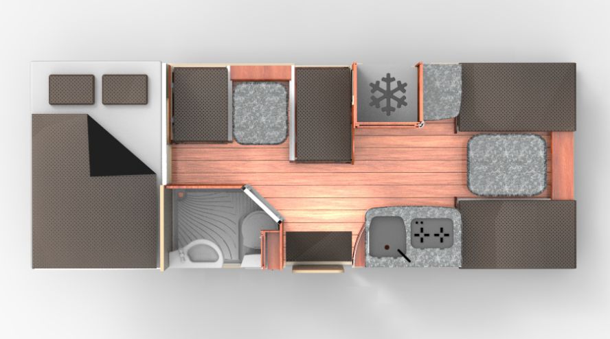 Please note: the layout of the camper as shown is an indication. The layout of the camper you will receive may be different.