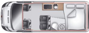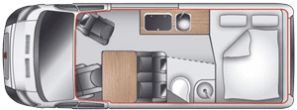 This campervan is for up to 4 people. The Campervan has a manual transmission, with shower and toiliet and a great dinette to sit and enjoy your breakfast. The Campervan is 5.41m long and 2.75min in height.